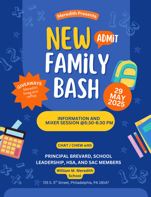 Read More: New Family Admit Bash – May 29If your family has been newly admitted to Meredith for the 2025-2026 school year, join us on Thursday, May 29 at 5:30 p.m. in the Meredith auditorium. You’ll learn more about what makes Meredith magic at our information session, and you’ll have a chance to meet other new families, win Meredith swag, and enjoy some…